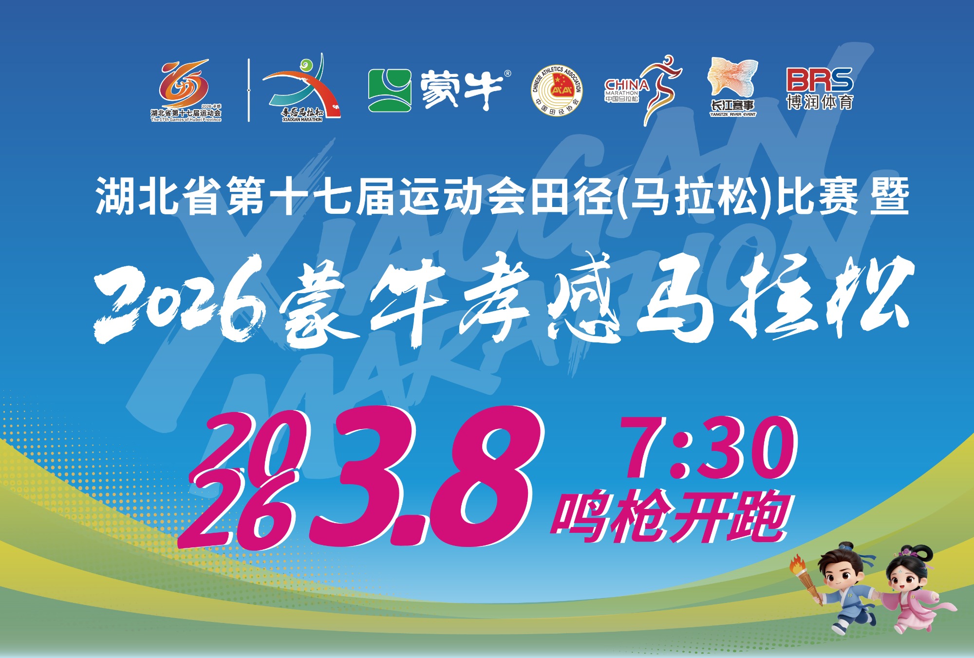 湖北省第十七届运动会田径(马拉松)比赛暨2026蒙牛孝感马拉松将于2026年3月8日(周日)7:30在孝感市文化中心鸣枪起跑。赛事总规模为16000人,分别设置马拉松项目(42.195公里)6000人(含省运会组100人)、半程马拉松项目(21.0975公里)10000人(含省运会组100人)